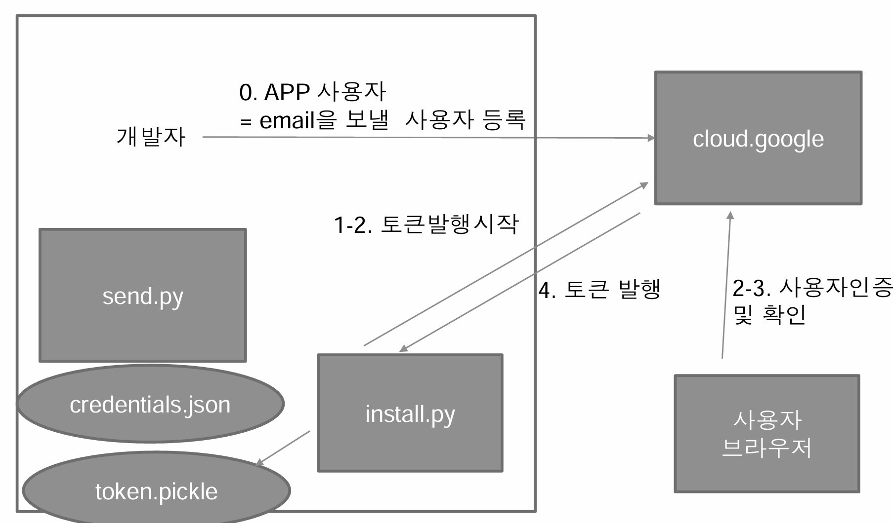 - Google은 토큰을 발행하여 애플리케이션에 반환. (token.pickle)