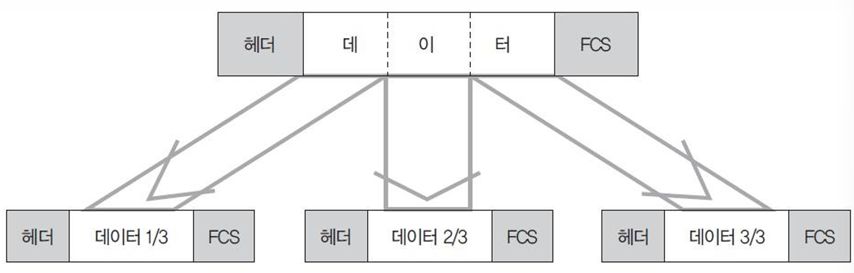 - 패킷이 지나는 네트워크의 최대 전송 가능 길이가 100바이트라면 패킷 하나가 655개로 분할