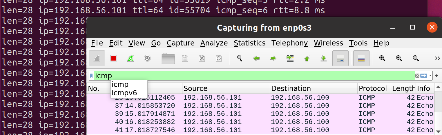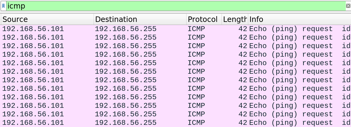 - sudo hping3 192.168.56.255 -a 192.168.56.100 --icmp