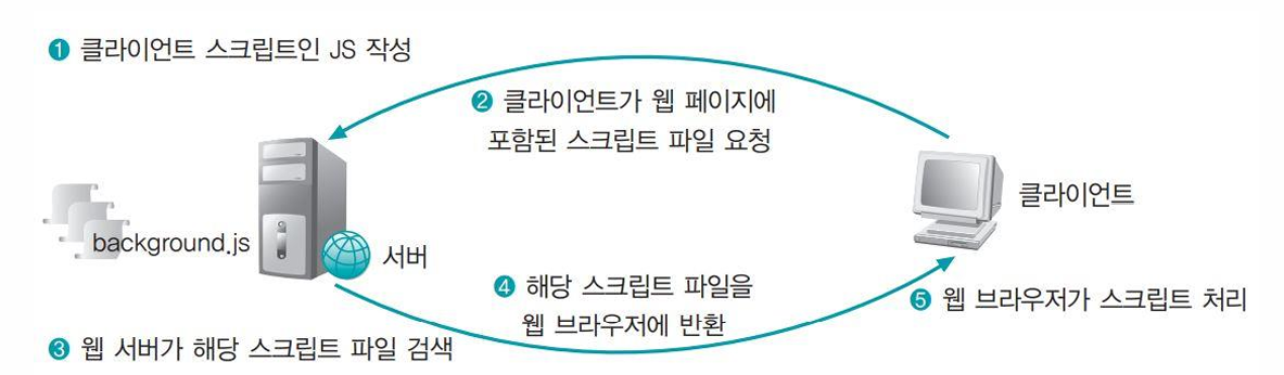 - 서버가 아닌 웹 브라우저에서 해석되어 화면에 적용되어 웹 서버의 부담을 줄이면서도 다양한 기능을 수행