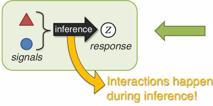 멀티모달 상호작용은 입력된 신호(a, b)가 어떻게 조합되어 결과(response)를 형성하는지에 따라 다르게 분류된다. 이 상호작용은 크게 두 범주로 나뉜다.