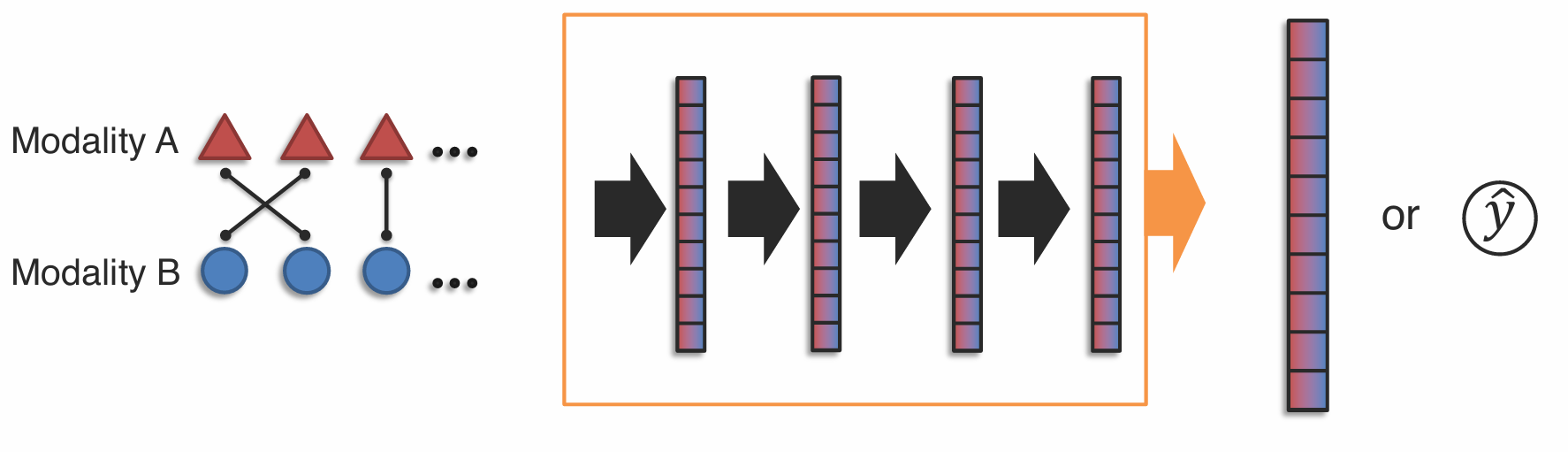 그래서, 학습을 통해 이질적인 모달리티를 추상적으로 만들고, 경우에 따라 동질적 표현 공간으로 변환하는 것은 멀티모달 머신러닝의 중요한 목표이다. 이를 통해 모달리티 간의 차이를 극복하고, 데이터 간의 의미적 관계를 통합적으로 모델링할 수 있다.