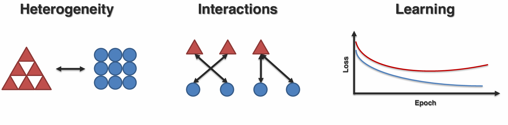 - Heterogeneity (이질성) : 각 모달리티의 다양한 특성(예: 데이터 구조, 표현 공간)을 분석.